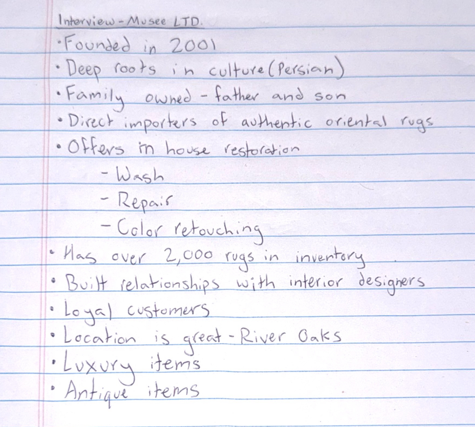 To build an authentic digital presence for Musee LTD, I began by interviewing the owner and getting information on the business’s past. I studied the types of rugs the business specializes in, the restoration services offered, and our relationships with interior designers and loyal customers. This discovery phase helped me understand what made the brand special and how to bring that story online.